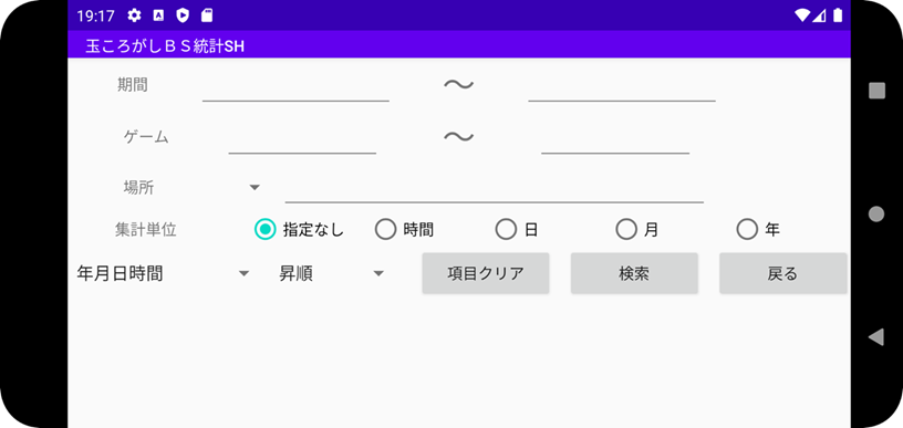 | 統計3(ゲーム)検索画面 |